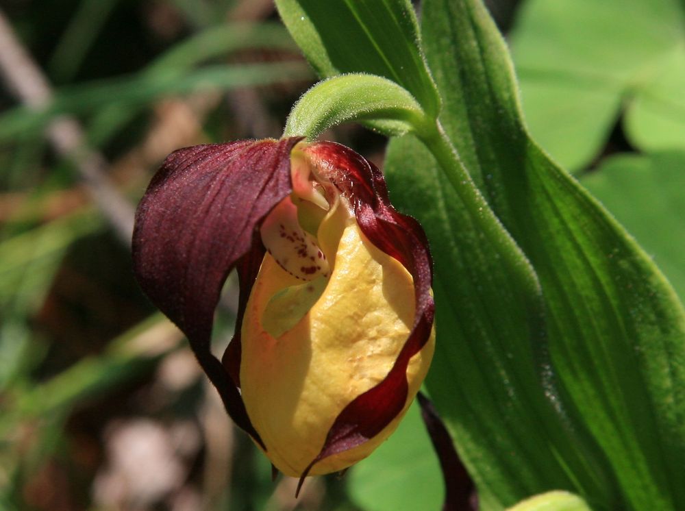 Description :Le Sabot de Vénus est une plante herbacée vivace à rhizome mesurant entre 20 et 60 cm de hauteur. La tige est dressée, simple et gainées à la base. Elle porte 3 à 5 feuilles alternes, larges, ovales et embrassantes. Elles sont de couleur vert clair, pubescentes sur leur face inférieure et fortement nervurées. La fleur possède 3 sépales, de couleur brun rouge, de 5 cm de longueur et de forme lancéolée et 3 pétales. Les sépales latéraux sont soudés et pointent vers le labelle, en forme de sabot de couleur jaune. Le gynostème est penché avec une anthère sur chaque pointe latérale. Le fruit est une capsule.Photos JPB Synonymes :Cypripède, Sabot de la Vierge, Cypripède soulier au Canada, Pantoufle de Notre-Dame, Soulier de la Vierge.Floraison :De mai à juillet.Habitat :Collines, montagnes, clairières, lisières de forêts de feuillus et de résineux. Sols calcaires, exposition mi-ombre.Commentaire :Cueillette interdite – Espèce rare et protégée.D’autres genres d’Orchidées sont aussi appelées Sabot de Vénus et parmi eux les Paphiopedilums, originaires d’Asie. Ils font parties des principaux genres hybridés, souvent créés pour la fleur coupée. Vous pouvez admirer un Paphiopedilum gratrixianum en cliquant sur le lien ci-dessous : Paphiopedilum gratrixianum - Sabot de Vénus Date de prise de vue : 03/06/2012 - 24/05/2015 Lieu de prise de vue : 26410 Cirque d'Archiane - 26410 Les Gallands |