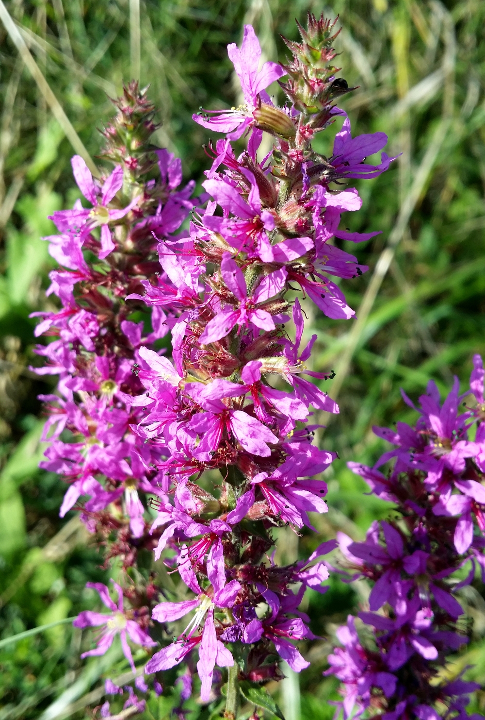 Description :La Salicaire commune est une plante vivace, assez robuste, en touffe, à rhizome noueux, qui forme de longues inflorescences rose pourpre semblables à des épis aux fleurs en étoiles rose-violet apparaissant en juin et continuant pendant la période estivale. Les tiges anguleuses et quadrangulaires, rigides et ramifiées vers le haut, sont couvertes de poils gris, fins et doux. Les feuilles sont ovales à lancéolées, étroites et pointues. Le fruit est une capsule ovoïde à nombreuses graines.Photos NP Synonymes :Lysimaque rouge, Herbe aux Coliques, Salicaire à Épis, Salicaire officinale.Floraison :De juin à octobre.Habitat :La Salicaire poussant toujours à proximité d'eau elle apprécie les bords de rivières, les fossés en eau et les canaux de drainage ou d'arrosage, les bords de mares et d’étangs. On la trouve aussi dans les prairies humides.Usage Scientifique :La Salicaire est astringente et antidiarrhéique avec des propriétés antimicrobiennes vis à vis de la plupart des germes responsables des diarrhées aigües. Elle est aussi analgésique et anti-inflammatoire, hémostatique, cicatrisante.Utilisation : Une poignée de sommités fleuries pour un litre d'eau bouillante, infuser 20 mn. Boire en 2 jours en cas de diarrhée. Egalement riche en polyphénols efficaces contre l'insuffisance veineuse. Les feuilles sont comestibles crues ou cuites. La tige et sa pulpe sont comestibles après cuisson. Date de prise de vue : 12/08/2015 - 24/07/2016 - 18/08/2017 Lieu de prise de vue : 70110 Melecey |