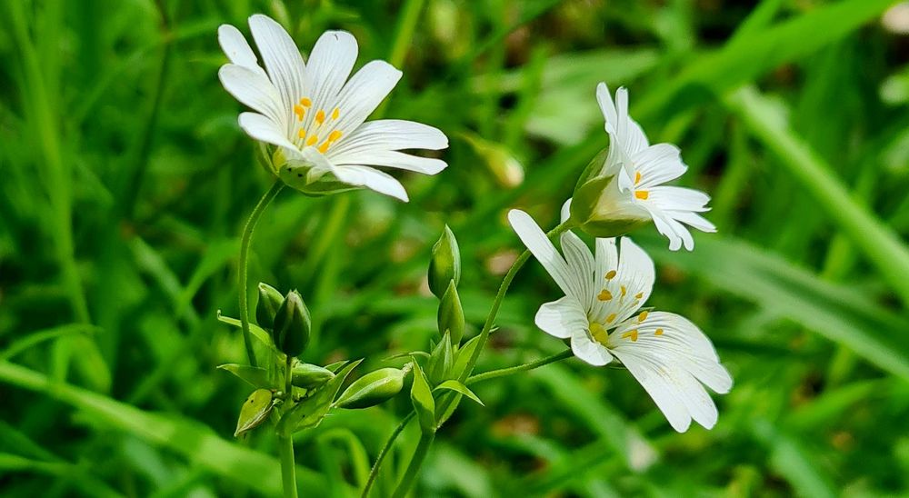 Description :La Stellaire holostée est une plante herbacée vivace, à souche traçante, mesurant entre 20 et 60 cm de hauteur. Les tiges sont dressées, simples ou ramifiées. Elles sont quadrangulaires, glabres en bas et pubescentes vers le haut. Les feuilles sont opposées, sessiles, à base embrassante, étroites avec un sommet pointu. Elles sont simples, entières, lancéolées et non pétiolées ; pubescentes sur le dessus et glabre en dessous. Elles sont ciliées au bord et sur la nervure en dessous. Les fleurs, de couleur blanche et de 2 à 3 cm de diamètre, sont disposées en cymes terminales lâches. Les pétales sont échancrés jusqu'à mi-longueur et sont deux fois plus longs que les sépales. 10 étamines libres. Le fruit globuleux ne dépasse pas les sépales.Photos NP Synonymes :Herbe à la Sainte-Vierge, Langue d'oiseau, Gramen fleuri, Grande stellaire.Floraison :De mars à juin.Habitat :Haies, forêts, lisières, chemins, talus, bord des ruisseaux.Usage Scientifique :La Stellaire holostée fut autrefois utilisée contre les infections locales. Une infusion de cette plante, ramassée en plein floraison et séchée, serait efficace contre la gastro et la diarrhée.Date de prise de vue : 01/05/2012 - 14/04/2014 - 18/04/2018 - 30/04/2023 Lieu de prise de vue : 70110 Georfans - 25250 Bournois - 70110 Fallon - 70200 Roye |
