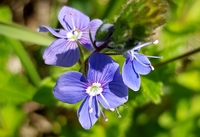 Description :La Véronique petit-chêne est une plante herbacée vivace de 10 à 40 cm de hauteur. Ses fleurs sont de couleur bleue vif avec le centre blanc ainsi que ses deux étamines sont facilement reconnaissables. Les 4 pétales de tailles inégales sont striés de bleu plus foncé. La tige rampante à la base, puis dressée porte des feuilles opposées, crénelées et velues. Le fruit est une capsule poilue en forme de cœur.Photos NP Synonymes :Fausse Germandrée, Chenette, Chasse fièvre, Germandrée officinale, Herbe-Thérèse, Véronique des bois.Floraison :De mars à juillet.Habitat :La Véronique Petit-Chêne apprécie les cultures, les pâturages, les bords des chemins, les prés et les lieux boisés avec une préférence pour les sols calcaires légèrement humides.Usage Scientifique :La Véronique Petit-Chêne a des propriétés astringentes, eupeptiques (facilite la digestion) et cicatrisantes (comme la Véronique officinale) mais est peu utilisée car la présence d'aucuboside peut provoquer des diarrhées.Commentaire :Les véroniques sont maintenant classées (APG II) dans la famille des Plantaginacées.La classification APG II (2003), ou classification phylogénétique, est une classification botanique des angiospermes établie selon les travaux de l'Angiosperms Phylogeny Group. Date de prise de vue : 07/05/2012 - 13/05/2019 Lieu de prise de vue : 70110 Melecey |