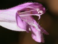 Description :Le Calament à grandes fleurs est une plante herbacée vivace mesurant entre 20 et 60 cm de hauteur. Elle est hermaphrodite, velue et parfumée (fleurs et feuilles). La tige est simple, dressée et feuillée. Les feuilles sont opposées,velues et longuement pétiolées. Le limbe, de forme ovale, est à dents profondes. Les longues fleurs, de couleur rose, sont peu nombreuses en verticilles écartés. Elles sont longuement pédicellées par 2 à 4 fleurs sur un pédoncule commun plus court que les feuilles. Le calice, vert à tube droit, est glabrescent, à dents inégales, ciliées. La corolle est à tube arqué-ascendant. Elle est bilabiée (2 lèvres) ; la lèvre supérieure est bifide et l’inférieure est trilobée. 4 étamines. Les fruits sont des akènes.Synonymes :Sarriette à grandes fleurs, Thé de l'Aubrac.Floraison :De juillet à septembre.Habitat :Sapinières, Sous-bois, surtout les hêtraies.Usage Scientifique :Le Calament à grandes fleurs a une odeur de menthe ou de citron. Il a des propriétés antispasmodiques. Il permet aussi de diminuer les maux de tête, les palpitations et les vertiges. Il se boit en infusion. On le trouve également dans des liqueurs et des apéritifs, ainsi que pour parfumer desserts, bonbons et glaces.Commentaire :Il est ramassé en grandes quantités dans l'Aubrac sous l'appellation Thé de l'Aubrac.Cette cueillette intensive menace d’extinction ce thé de l’Aubrac. Synonymes latins : Clinopodium grandiflorum, Satureja grandiflora. En France, il n'y a aucune plante toxique dans la famille des Lamiacées. Date de prise de vue : 09/08/2014 - 19/07/2015 Lieu de prise de vue : 26340 Saillans (massif des Trois Becs) - Forêt d'Ambel 26400 Omblèze |