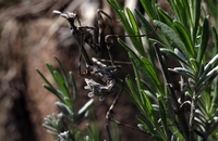 Description :L’Empuse commune (*) peut atteindre 6 cm de longueur et ne mesure que quelques millimètres d’épaisseur, faisant penser au Phasme avec son long thorax. La forme de ses pattes avant fait penser à une Mante. On peut distinguer aisément au stade adulte le mâle de la femelle en observant les antennes ; celles de la femelles sont courtes et filiformes alors que chez le mâle, elles sont longues et en forme de peigne (pectinées).Chez l’adulte, l’abdomen est allongé, recouvert par les élytres, lesquels protègent les ailes de 3 à 4 cm de longueur. On reconnait facilement si on est en présence d’une larve, appelée Diablotin, ou d’un adulte. Chez la larve, la taille est plus petite, l’abdomen est recourbé et les ailes sont absentes. L’Empuse est adulte entre mai et août. L’accouplement a lieu entre mai et juin et la femelle protège ses œufs dans une oothèque (membrane rigide enveloppant la ponte). L’Empuse commune est insectivore. Une petite mouche est suffisante pour rassasier la larve qui peut passer l’hiver presque sans manger. Elle se tient à l’abri du froid et se met au soleil dès que les températures deviennent plus douces. Au printemps la nourriture étant plus abondante, le Diablotin mange plus et grandit rapidement pour devenir adulte. Photos JPB Synonymes :Au stade adulte :- Empuse pennée. Au stade larvaire : - Diablotin, Diablotin de Provence, Juvénile de l'Empuse. Habitat :Garrigues, pelouses sèches, friches, herbes hautes, buissons, jardins.Commentaire :(*) Au vu de la forme de ses antennes nous voyons sur cette page une Empuse commune femelle.Les photos 4 à 9 représentent l’Empuse au stade larvaire ; on la nomme alors Diablotin, Diablotin de Provence ou Juvénile de l’Empuse. Date de prise de vue : 02/05/2019 - 07/08/2019 Lieu de prise de vue : 26400 Crest |