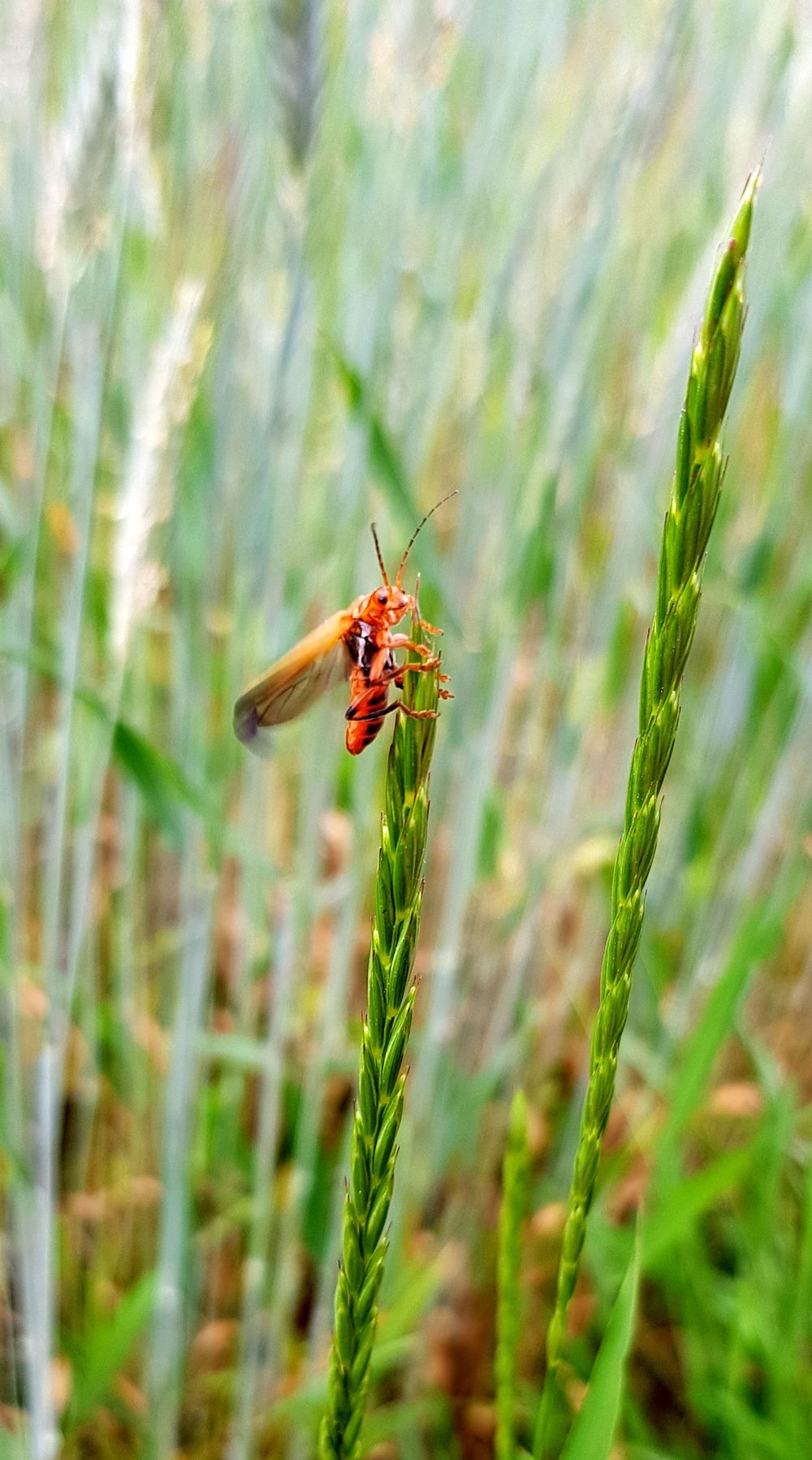 Description :Le Téléphore livide est un petit coléoptère qui mesure entre 10 et 15 mm de longueur. On l’observe principalement d’avril à août. En période d’hibernation, c’est une larve qui vit au sol. L’adulte se nourrit d’insectes et aussi de pollen. La larve se nourrit d’escargots et de vers de terre. Ce coléoptère a le corps plat et allongé et un pronotum large et arrondi vers l’avant. Pronotum : Partie supérieure du prothorax (Premier segment du thorax des insectes) des insectes. Il est de couleur orange, une tâche noire sur la tête. Sur les pattes arrières les fémurs sont noirs et les tibias assombris.Photos BF Synonymes :Pas de synonymes connus.Habitat :Lisière de bois, jardins, prairies, buissons.Commentaire :Le Téléphore livide se rencontre dans presque toute l’Europe où il en existe une trentaine d’espèce. Il existe une sous-espèce de Téléphore livide avec les élytres noirs et la seconde paire de pattes noire. Une tâche noire plus grande sur la tête.Date de prise de vue : 04/06/2021 Lieu de prise de vue : 70200 Roye |